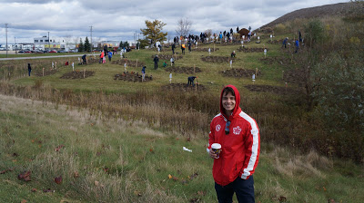 イベント前に植樹するエリアを示した数値ラベルを木に取り付け、事前に掘っておいた穴に参加者が植樹する形でイベントを実施。