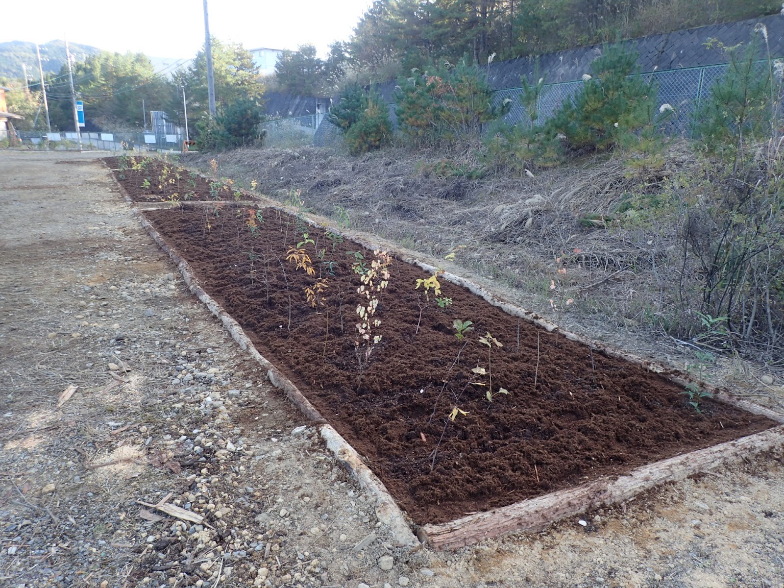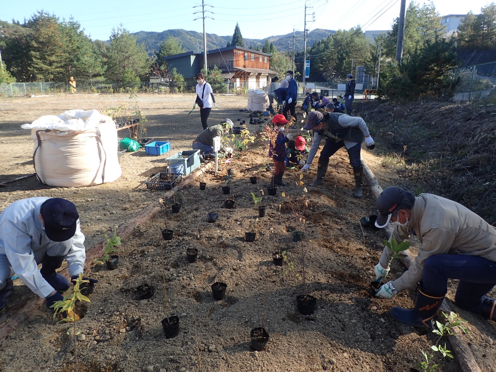 ・令和元年度(2019年)に引き続き、工場団地内の公園の一角に植樹を行いました。事前のやや固結した地盤の掘り起こし作業、主要樹種の唱和など、宮脇先生ご指導を踏まえた準備、周知活動を行いました。