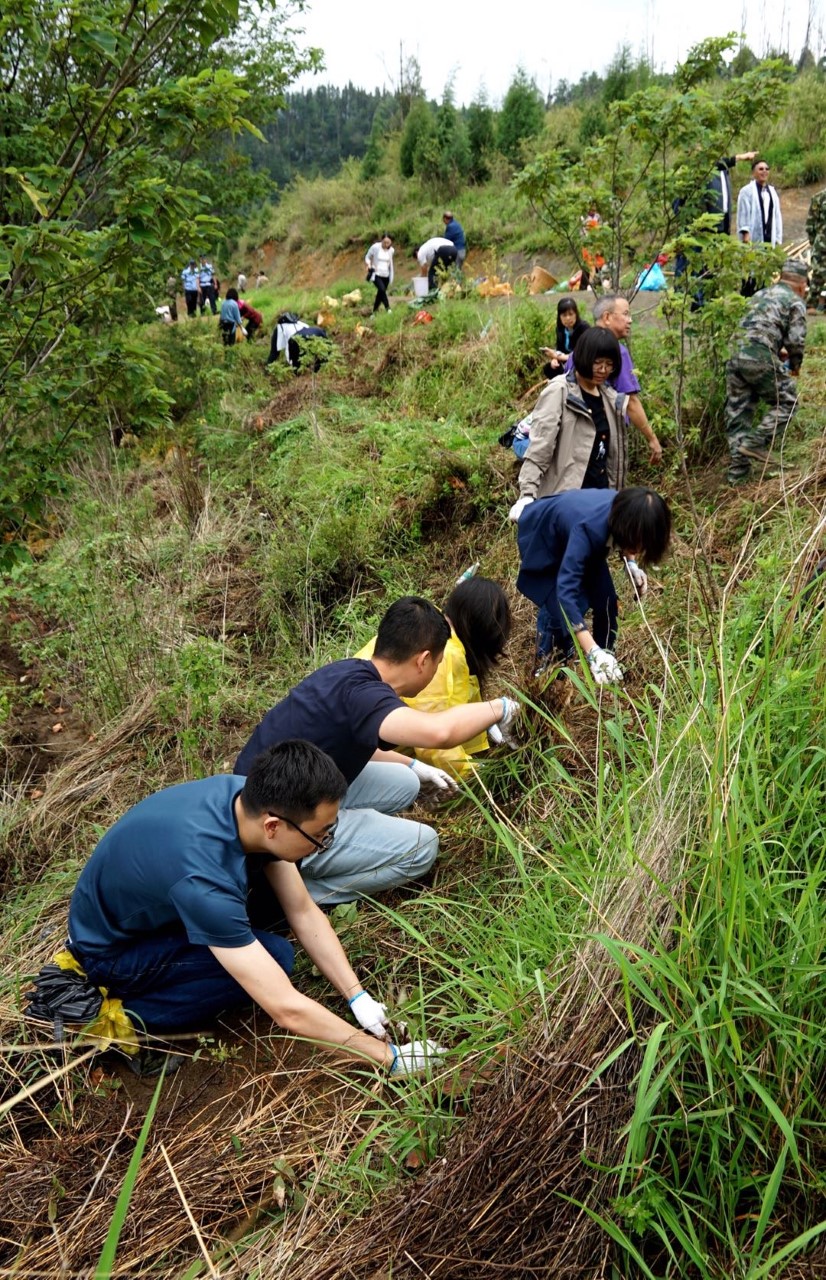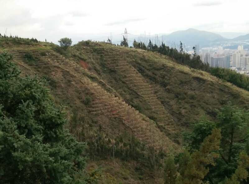 Planting event of 20000 saplings on degraded slope in Xishan, Kunming, China